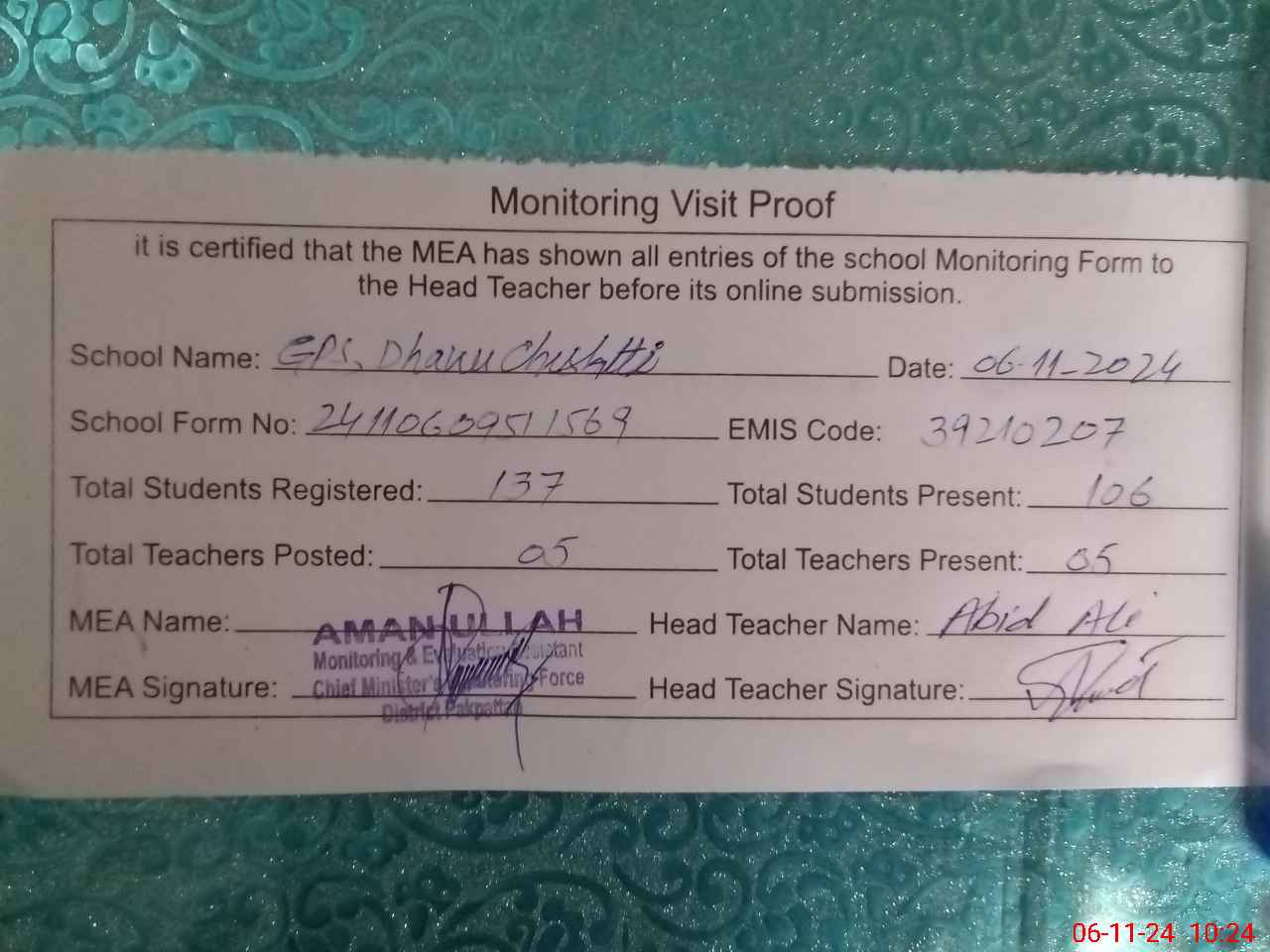 | EMIS Code: 39210207 | Name of School: GPS DHAKOO CHISHTI PO PAKPATTAN | |||