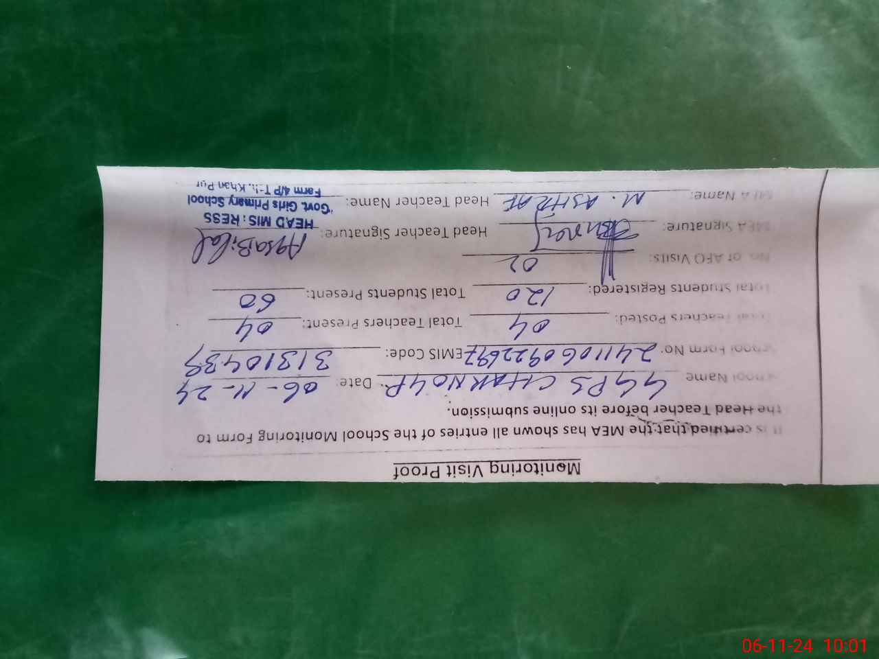 | Monitoring Date: 06-11-2024 | Start Time: 06-11-2024 09:22 AM | End Time: 06-11-2024 10:01 AM | Name of MEA: Mu**** As**** KP**** | |