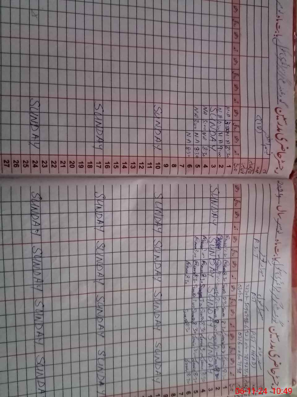 | CNIC | Full Name | Designation | R/C | Absence During Last Calender Month |