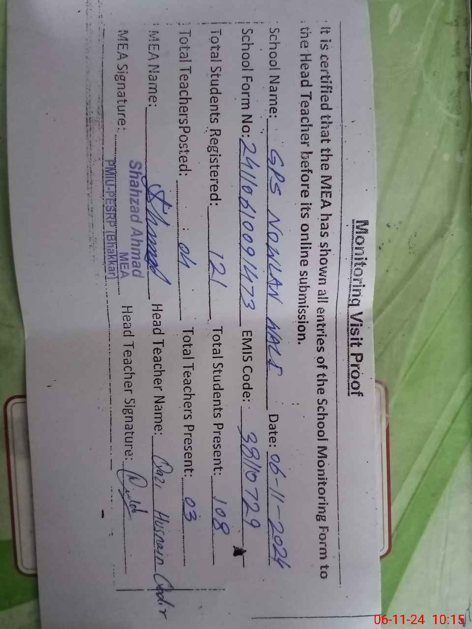 | EMIS Code: 38110729 | Name of School: GPS NOWLAN WALI | |||