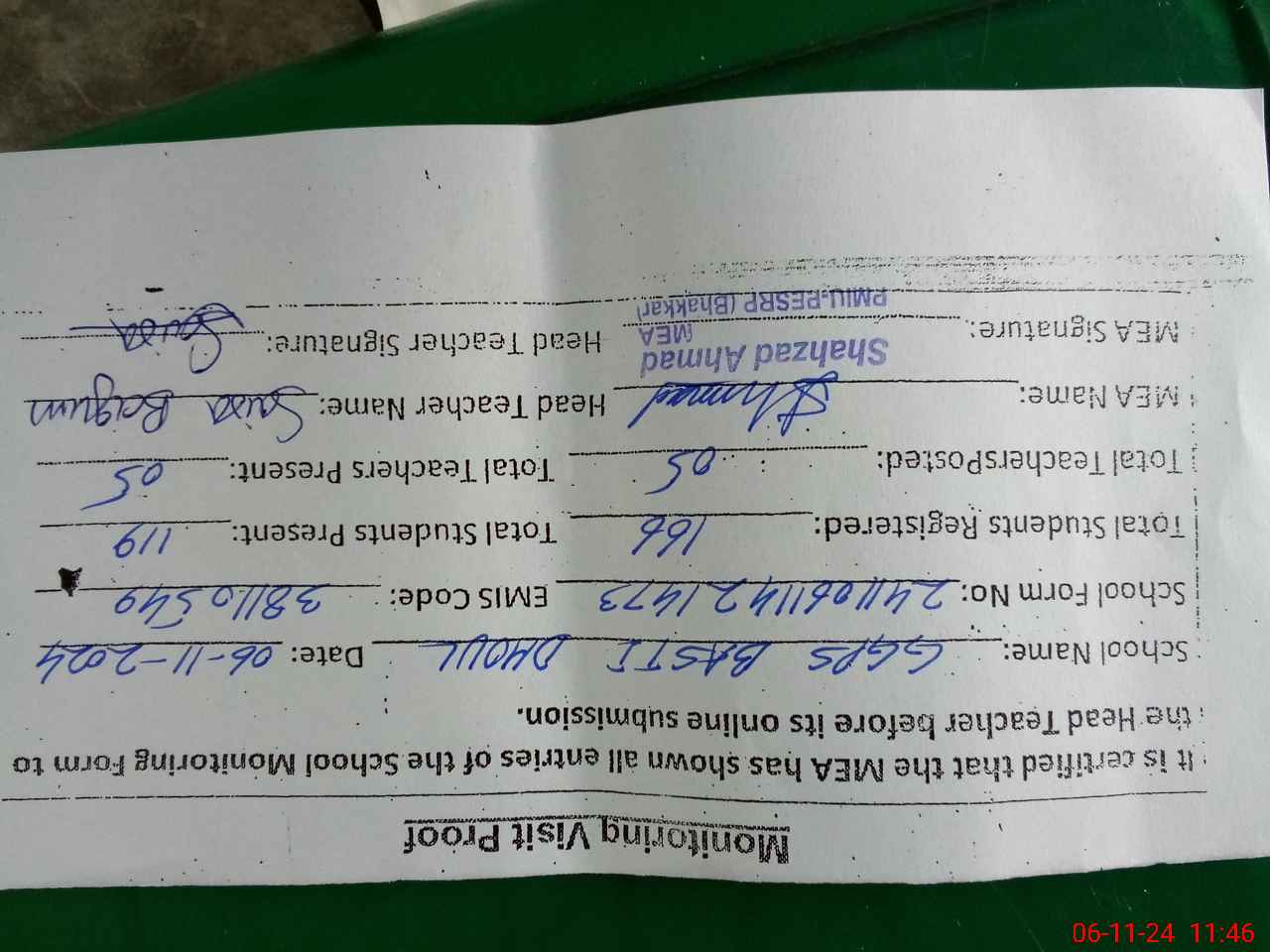 | Certified that this School was Inspected by the Undersigned MEA/DMO Today and the Information Stated Above is as Per Record. | |||||