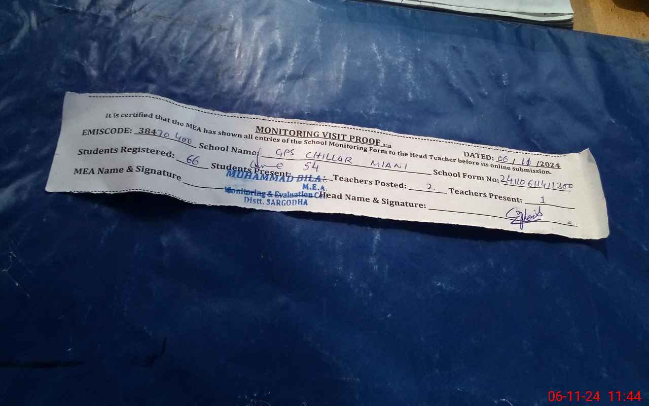 | EMIS Code: 38470400 | Name of School: GPS CHILLAR MIANI | |||