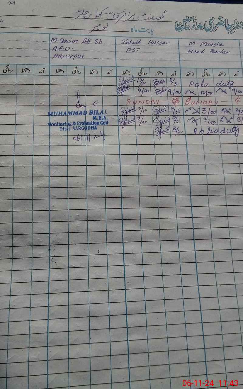 | District: SARGODHA | Tehsil: BHERA | Markaz: HAZOOR PUR - MALE | Level: Primary | |