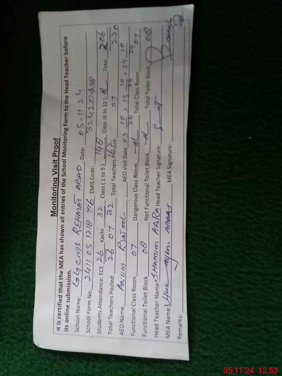 | EMIS Code: 32420438 | Name of School: GGCMS REHMAT ABAD | |||