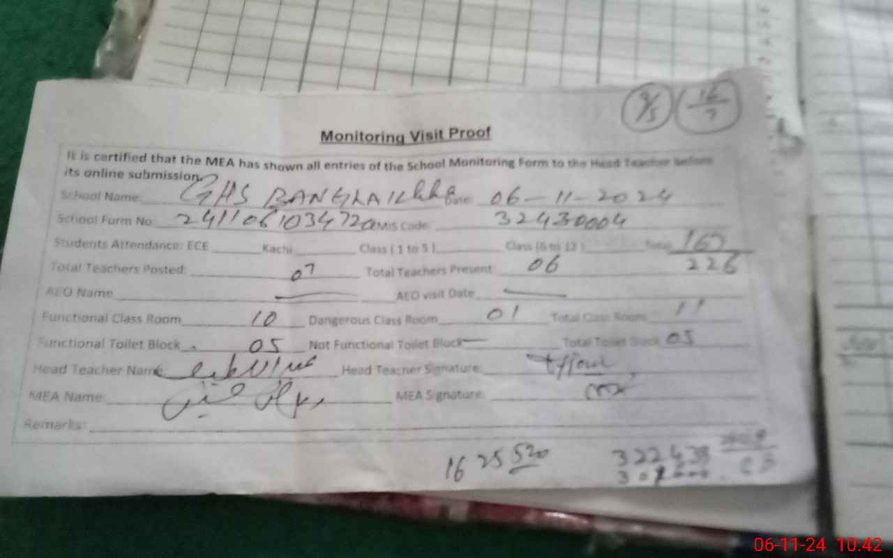 | EMIS Code: 32430004 | Name of School: GHS BANGLA ICHHA | |||