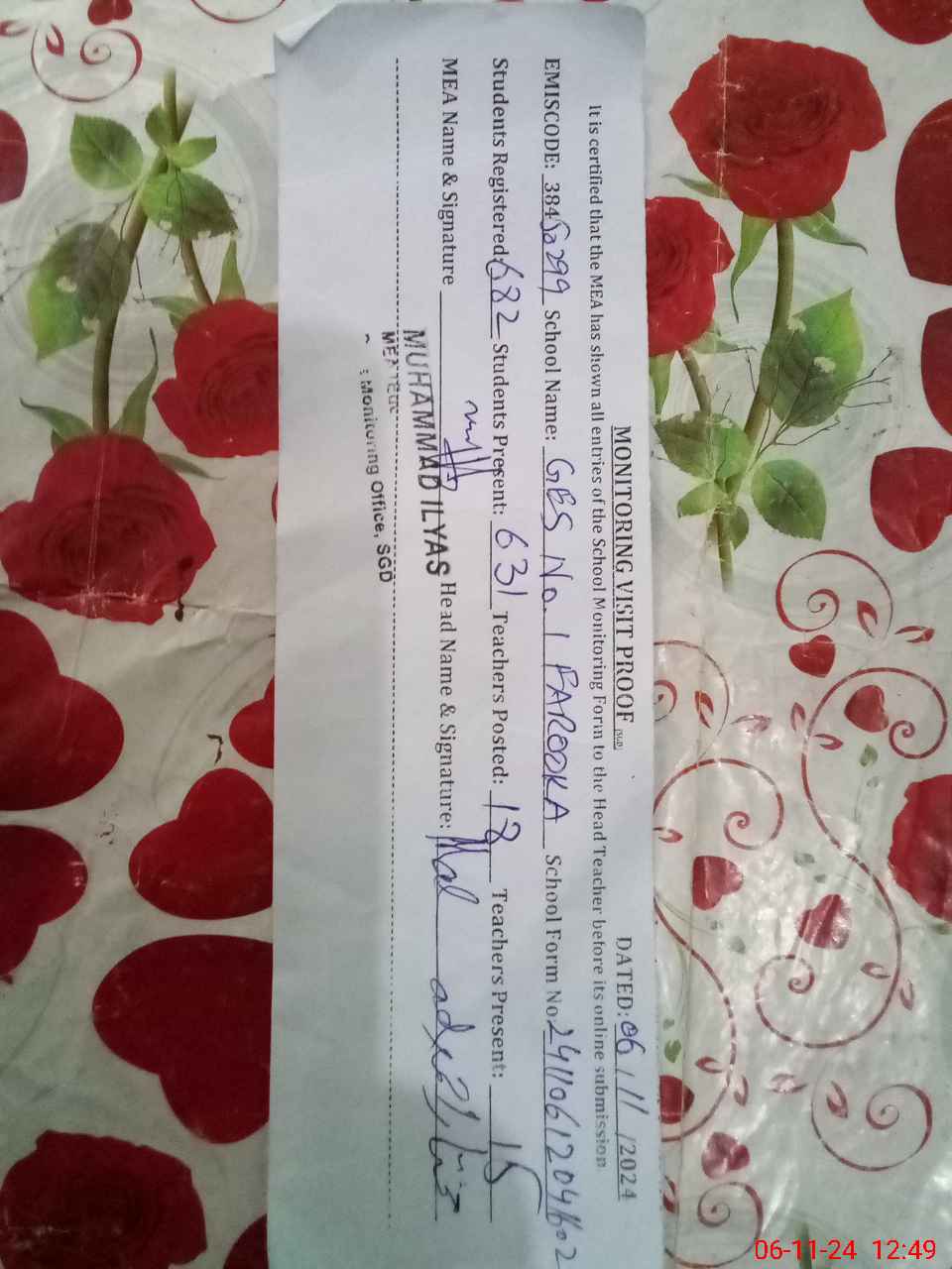 | Name: AB**** MA**** Designation: (School Headmaster's/Headmistress's) Inch HM Phone/Cell Number: 03**** |