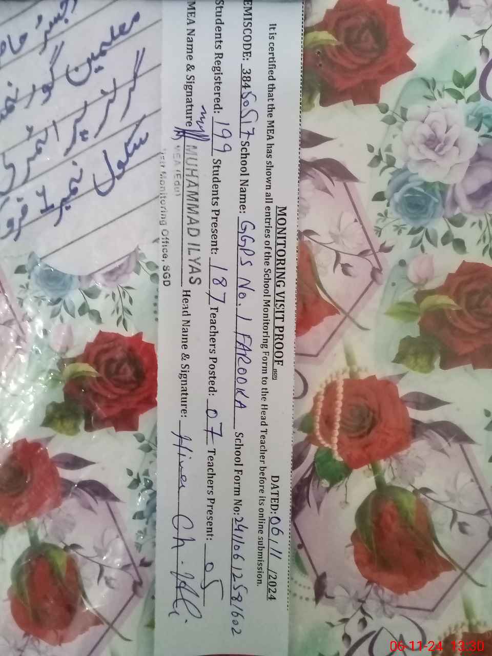 | EMIS Code: 38450517 | Name of School: GGPS NO.1 FAROOKA | |||