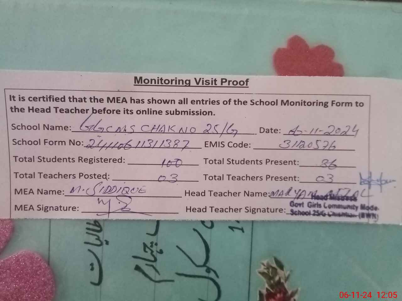 | EMIS Code: 31120574 | Name of School: GGCMS CHAK NO. 25/G | |||