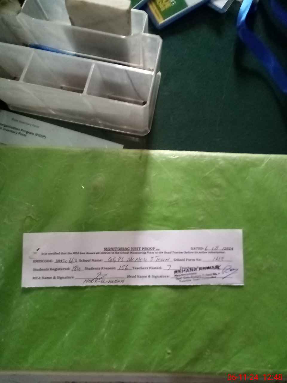 | Attendance Register | Head Teacher | MEA with School | Visit Proof |