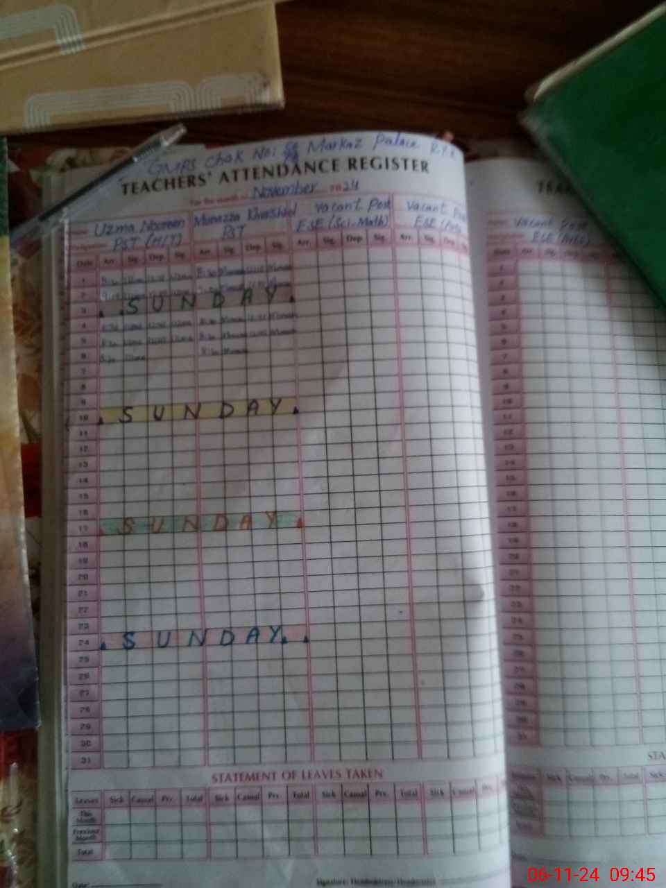 | Name: Uz**** Na**** Designation: (School Headmaster's/Headmistress's) PST Phone/Cell Number: 03**** |