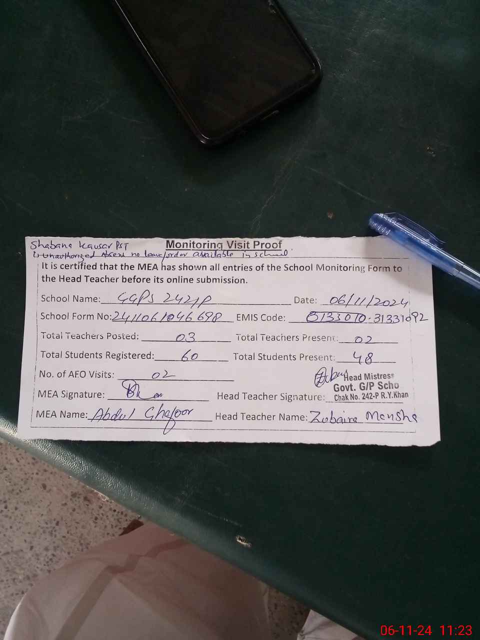 | EMIS Code: 31331092 | Name of School: GGPS CHAK 242 P | |||