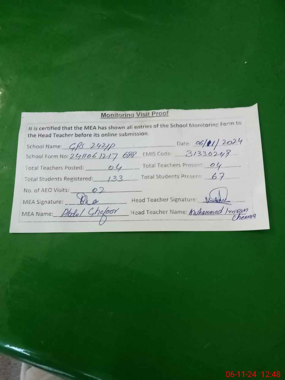 | EMIS Code: 31330249 | Name of School: GPS CHAK 242/P | |||