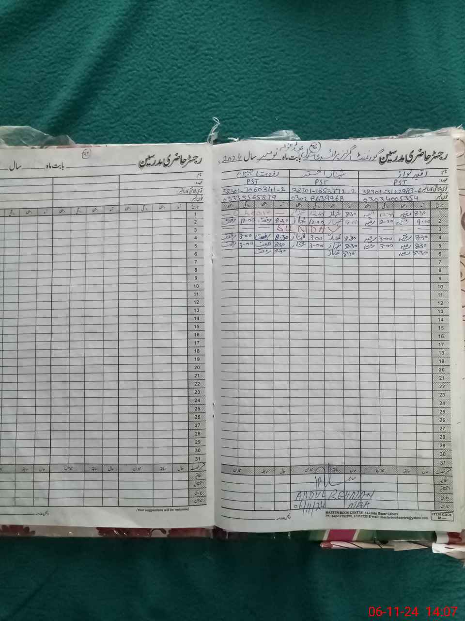 | CNIC | Full Name | Designation | R/C | Absence During Last Calender Month |