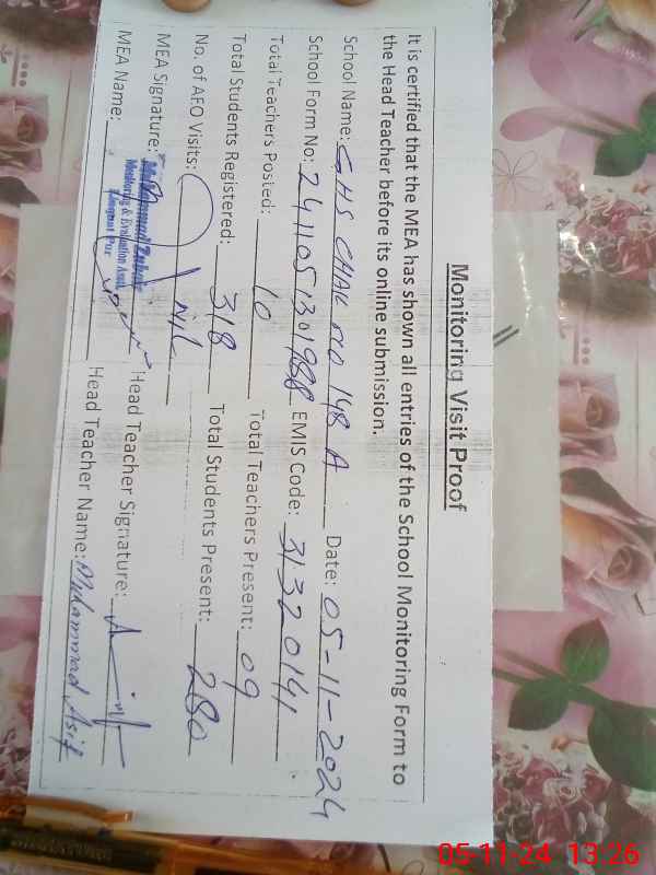 | EMIS Code: 31320141 | Name of School: GHS CHAK 148/A | |||