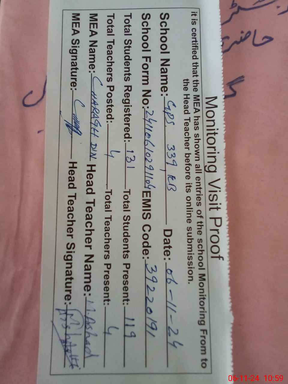| EMIS Code: 39220191 | Name of School: GPS 339 EB | |||