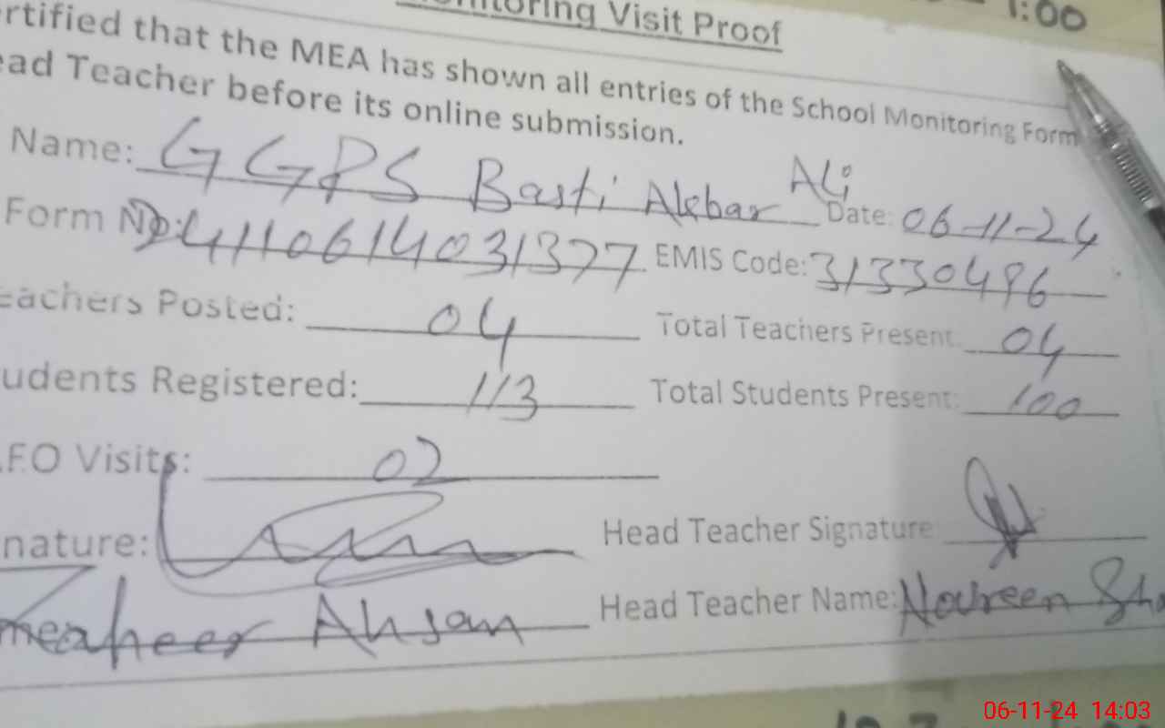 | EMIS Code: 31330496 | Name of School: GGPS BASTI AKBAR ALI | |||