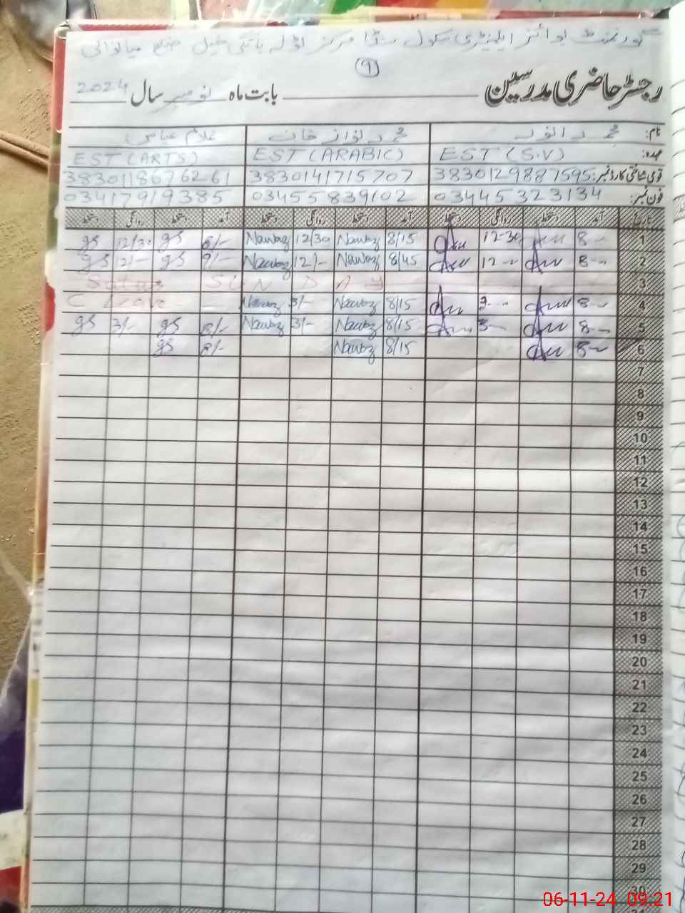 | Name: Mu**** An**** Designation: (School Headmaster's/Headmistress's) Est Phone/Cell Number: 03**** |
