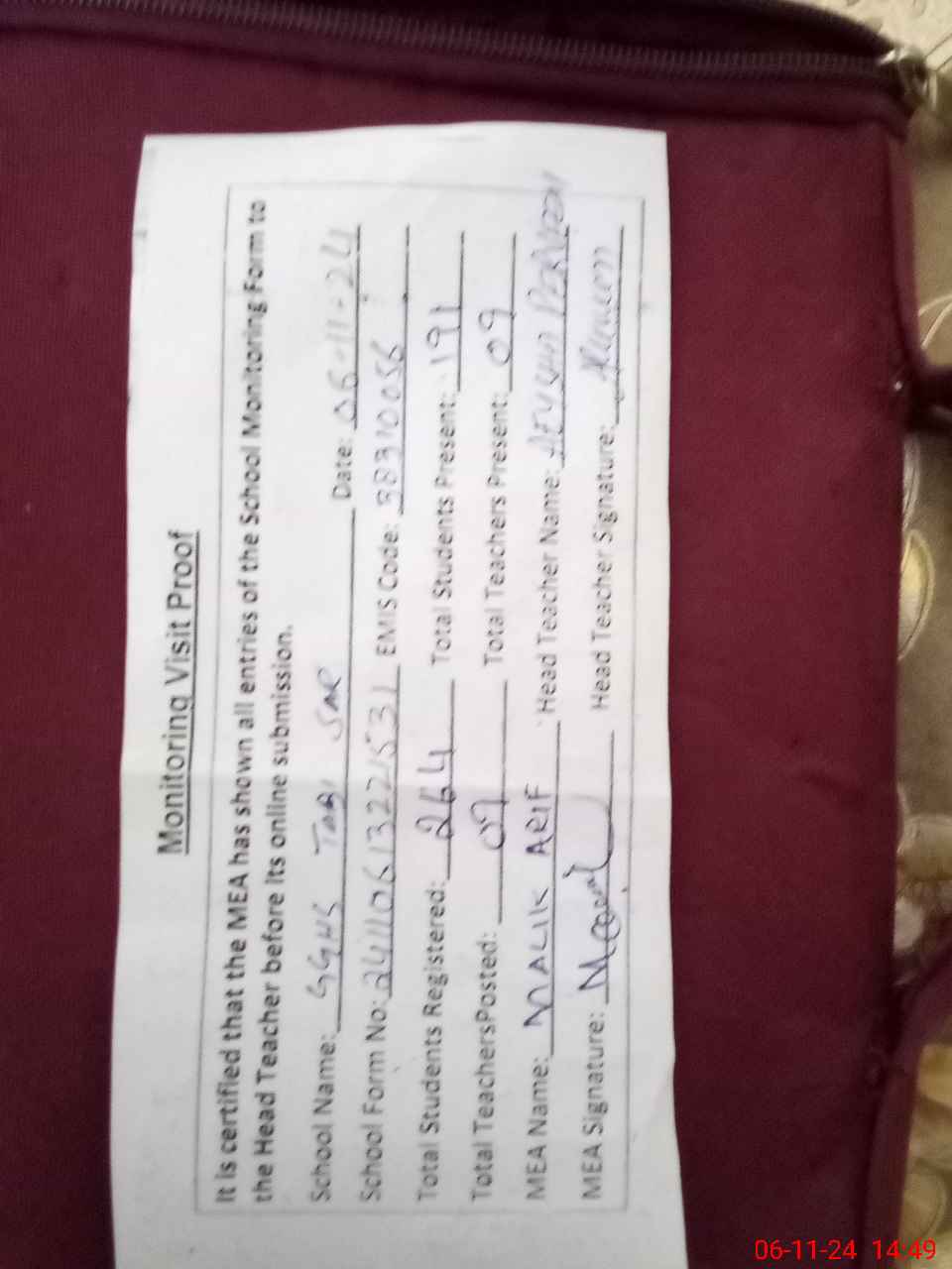 | Certified that this School was Inspected by the Undersigned MEA/DMO Today and the Information Stated Above is as Per Record. | |||||