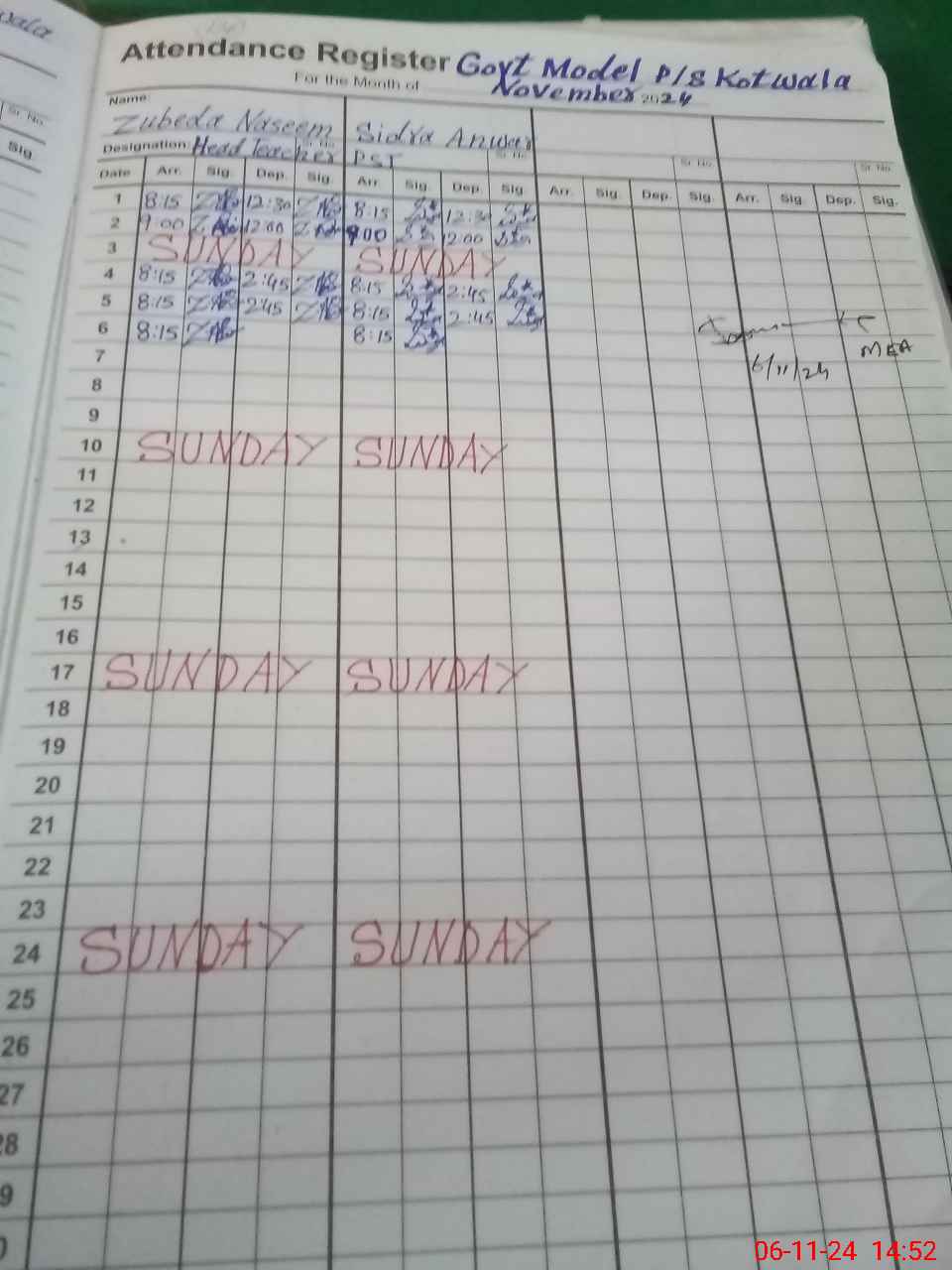 | Name: SI**** AN**** Designation: (School Headmaster's/Headmistress's) PST Phone/Cell Number: 03**** |