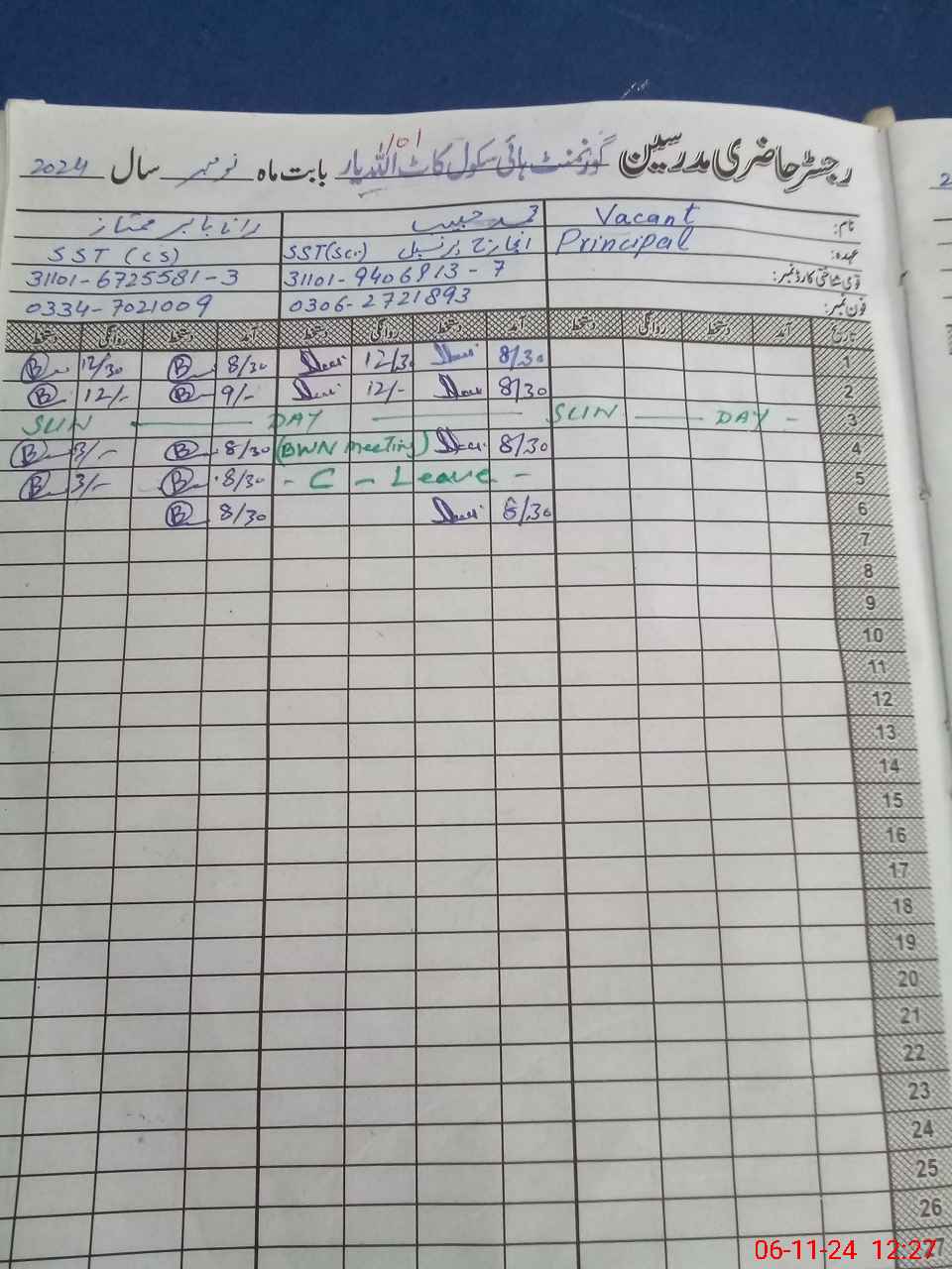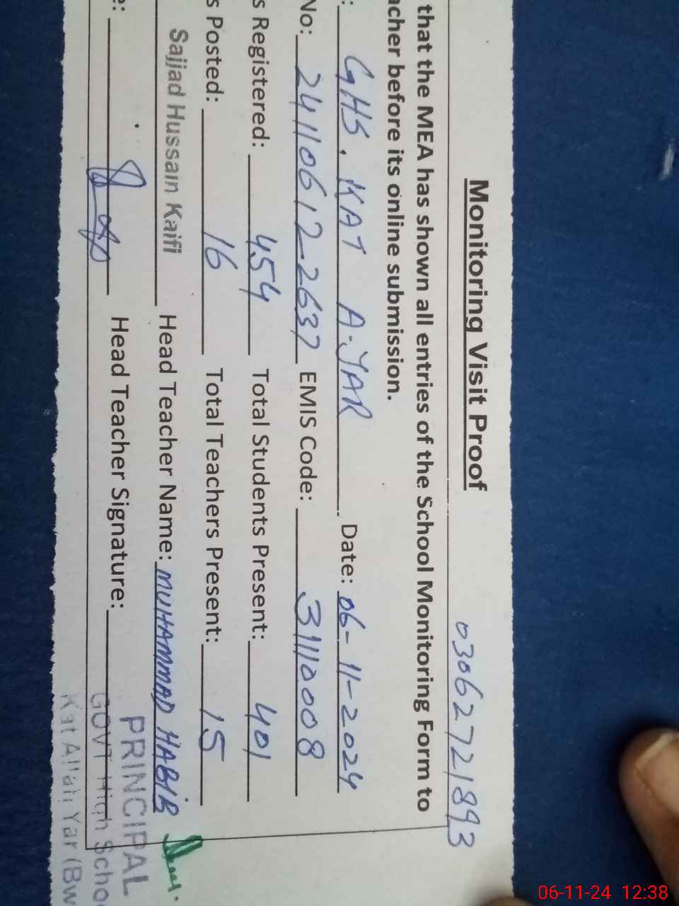| Name: MU**** HA**** Designation: (School Headmaster's/Headmistress's) SST SCI Phone/Cell Number: 03**** |