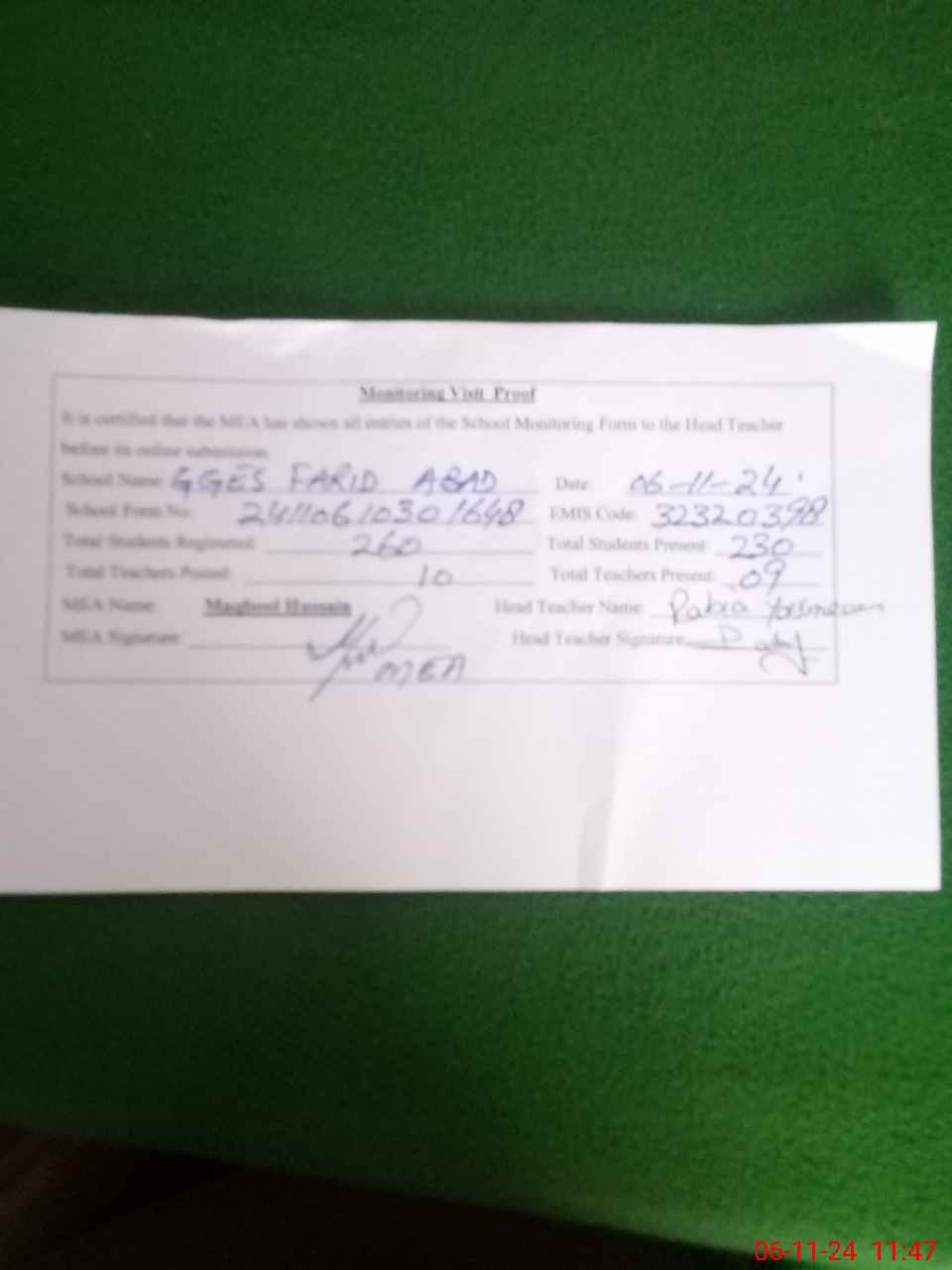 | EMIS Code: 32320398 | Name of School: GGES FARID ABAD | |||