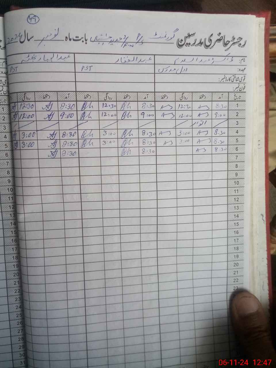 | CNIC | Full Name | Designation | R/C | Absence During Last Calender Month |