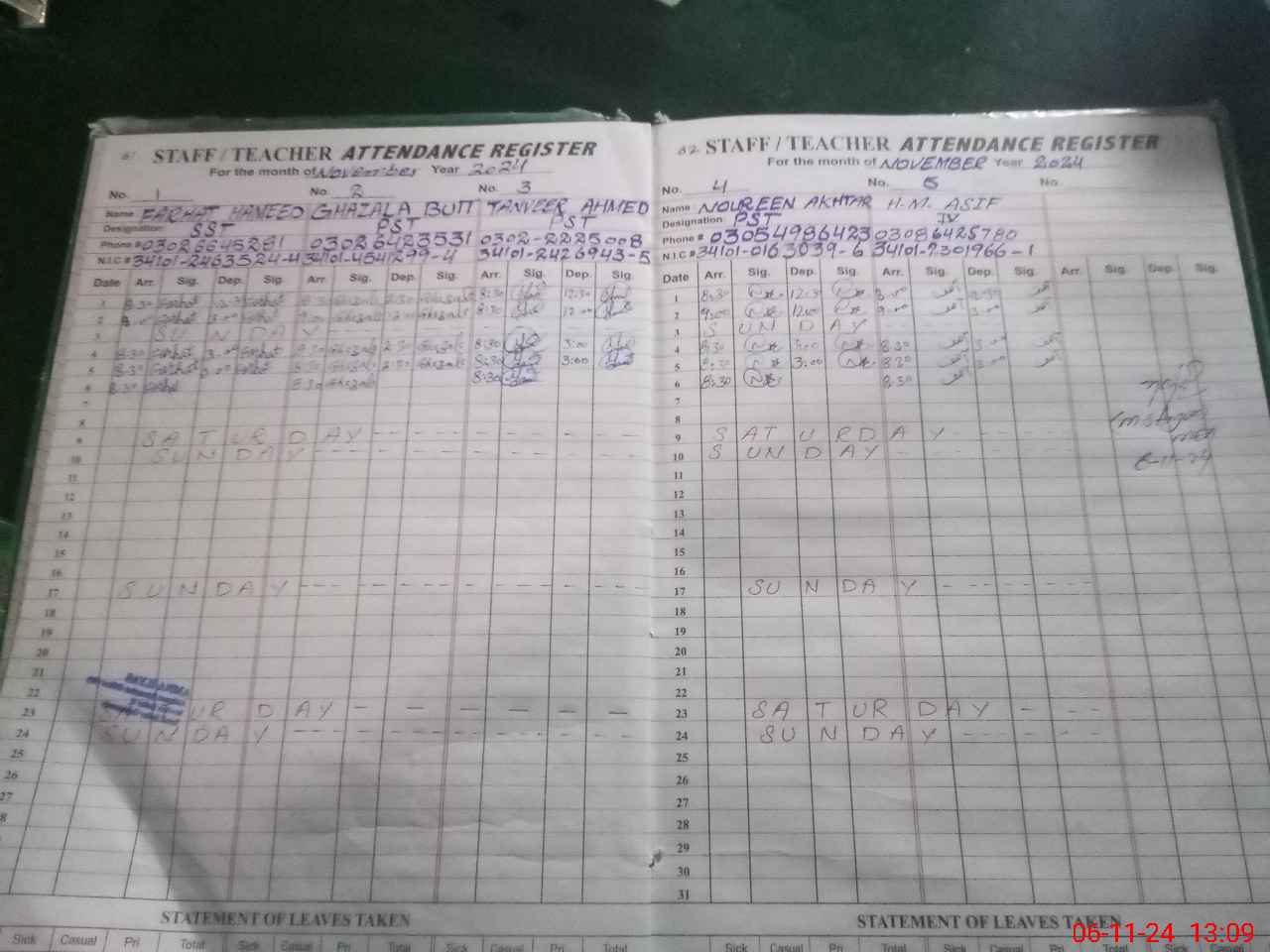 | CNIC | Full Name | Designation | R/C | Absence During Last Calender Month |