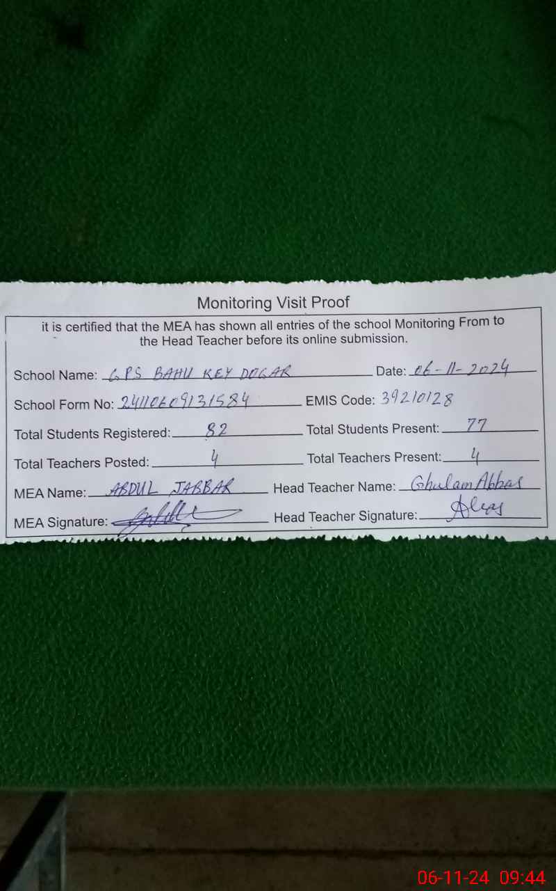 | EMIS Code: 39210128 | Name of School: GPS BAHU KEY DOGAR | |||