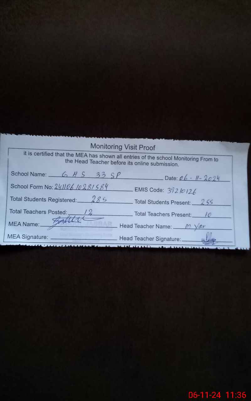 | EMIS Code: 39210126 | Name of School: GHS 33 SP | |||