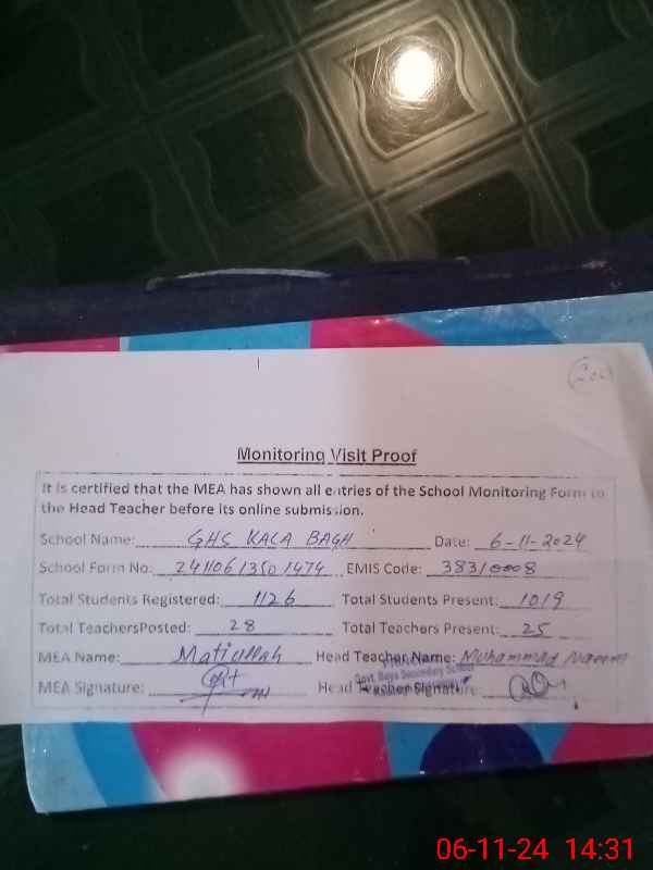 | EMIS Code: 38310008 | Name of School: GHS KALA BAGH | |||