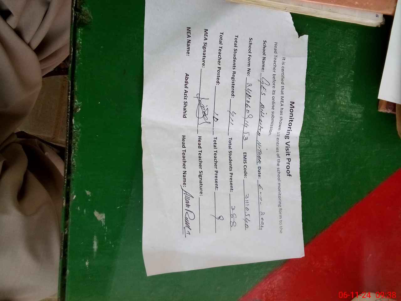 | Certified that this School was Inspected by the Undersigned MEA/DMO Today and the Information Stated Above is as Per Record. | |||||