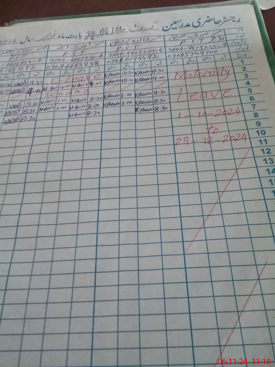 | 31**** | Sa**** Si**** | Contract | 30 | 0 | 0 | 30 | 0 | 0 | 0 | 0 | 0 | Maternity | |