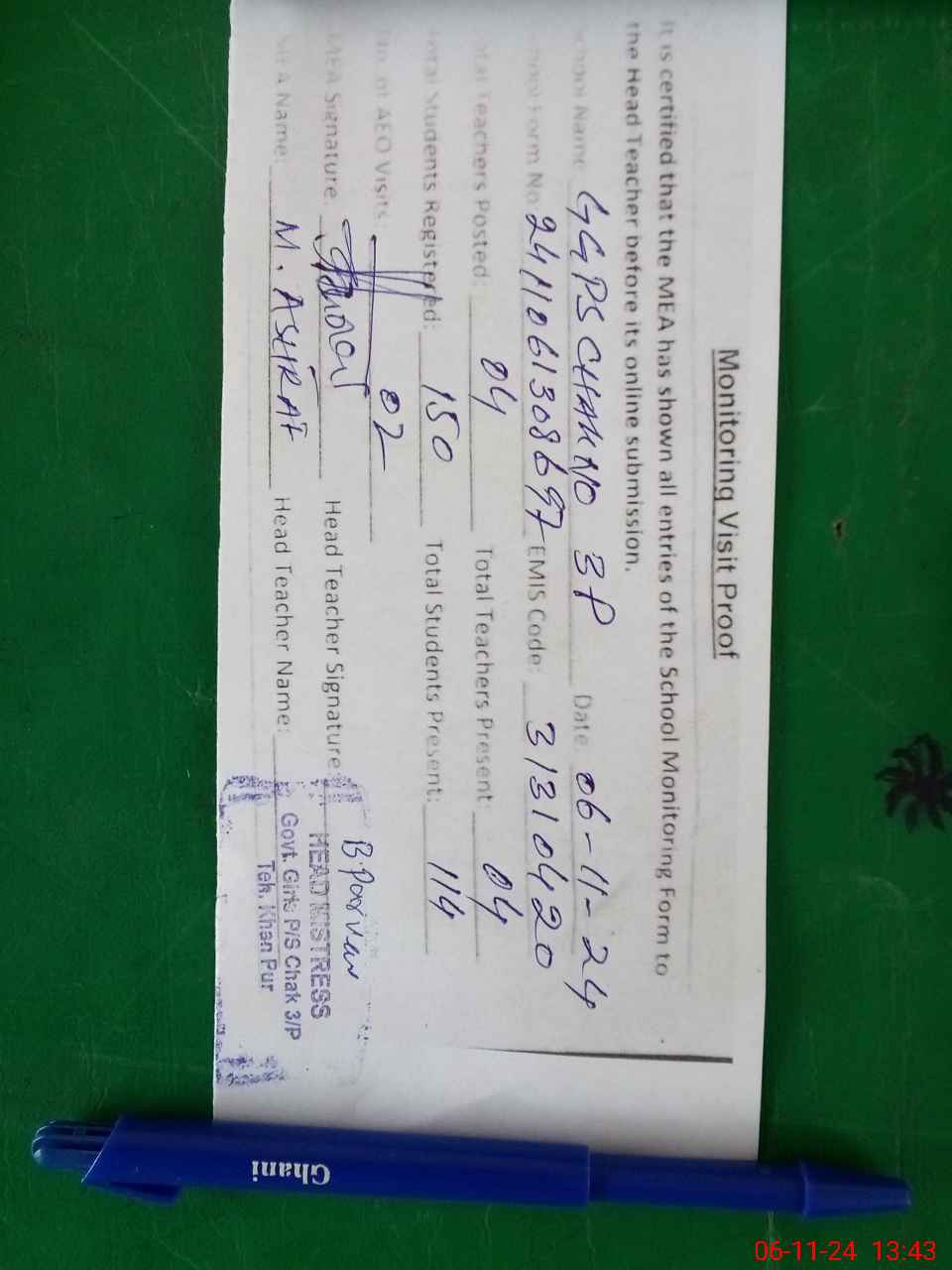 | EMIS Code: 31310420 | Name of School: GGPS CHAK 3/P | |||
