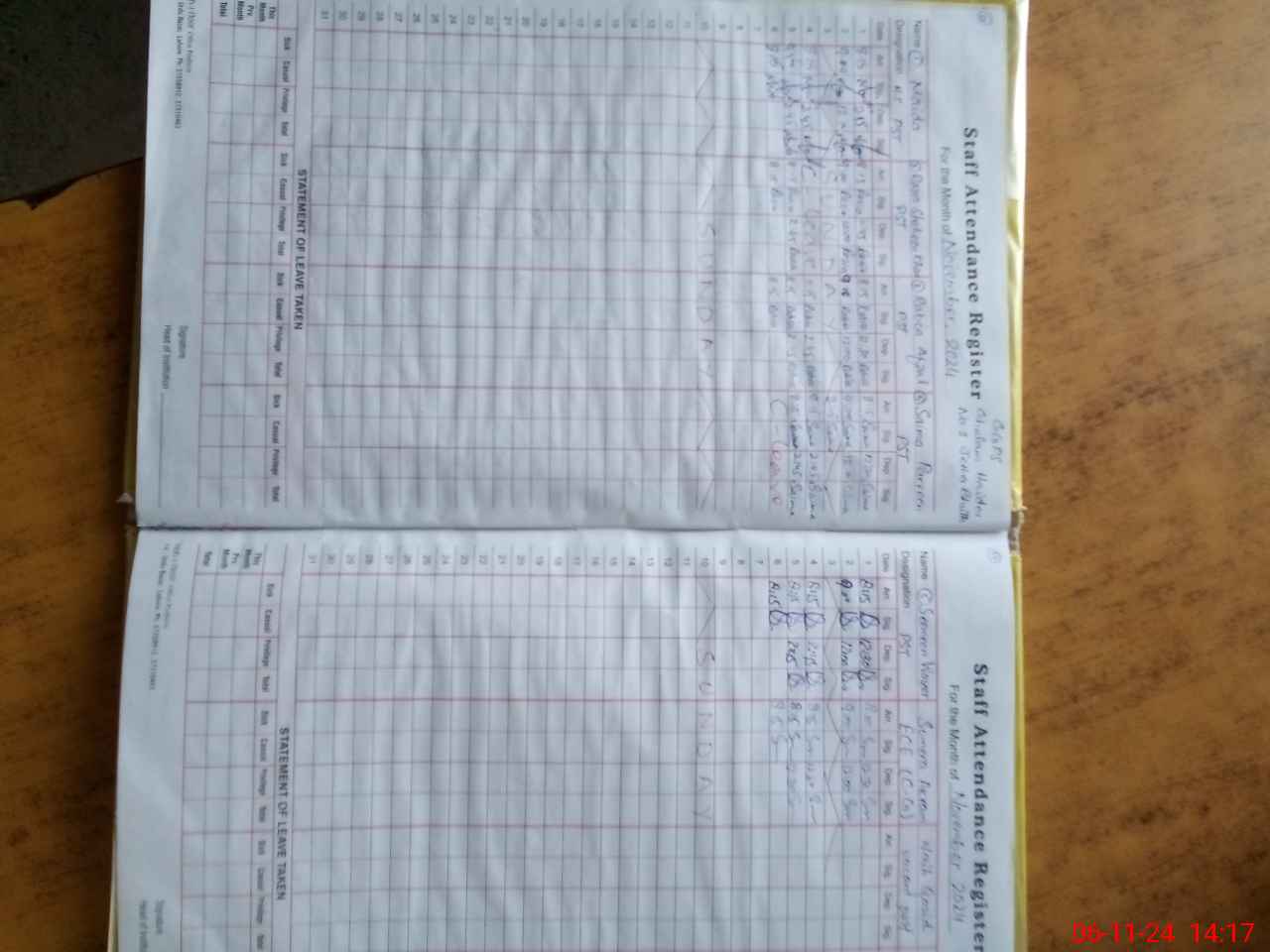 | CNIC | Full Name | Designation | R/C | Absence During Last Calender Month |