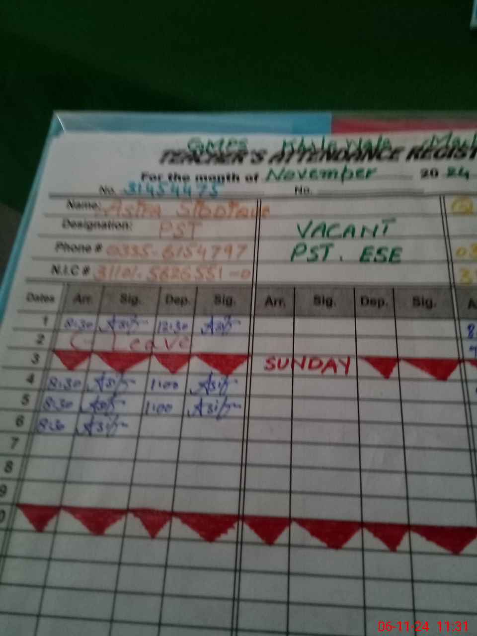 | Name: AS**** SI**** Designation: (School Headmaster's/Headmistress's) PST Phone/Cell Number: 03**** |