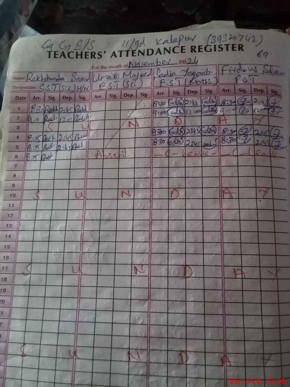 | Remarks (Use Separate Page if Required): Ms Umaira Majeed absent from duty WEF 01 November 2024 | |||||