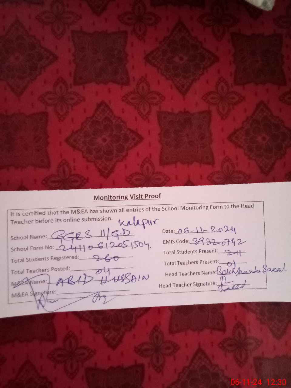 | EMIS Code: 39320742 | Name of School: GGES 11/G.D KALAPUR | |||