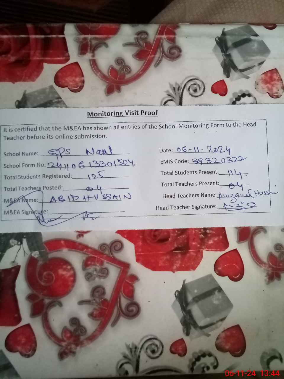 | Certified that this School was Inspected by the Undersigned MEA/DMO Today and the Information Stated Above is as Per Record. | |||||