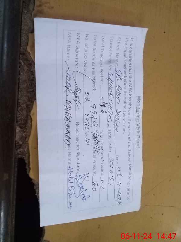 | EMIS Code: 31310157 | Name of School: GPS BASTI JULLUN | |||
