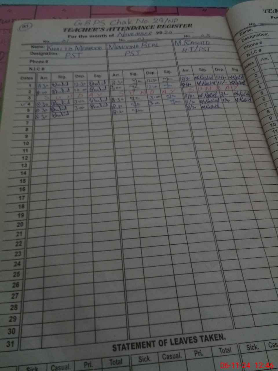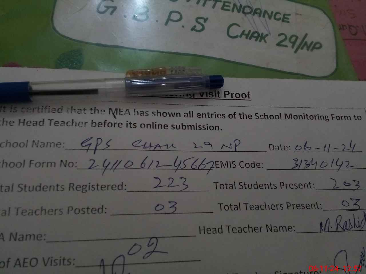 | EMIS Code: 31340142 | Name of School: GPS CHAK NO. 29/NP | |||