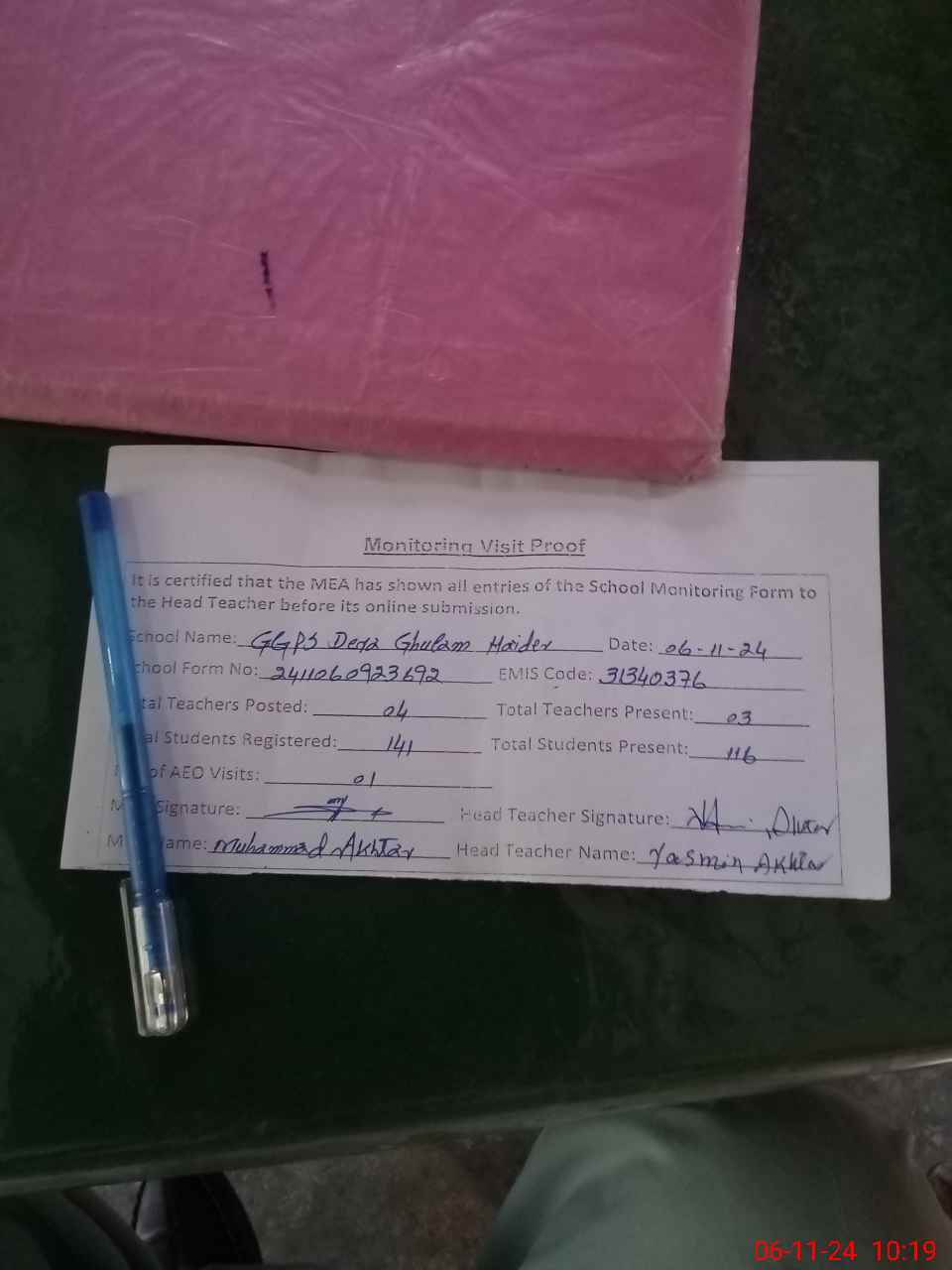 | EMIS Code: 31340376 | Name of School: GGPS DERA GHULAM HAIDER | |||
