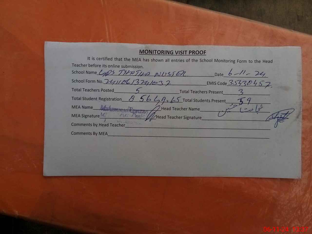 | EMIS Code: 35430457 | Name of School: GPS THATTA NUSTER | |||