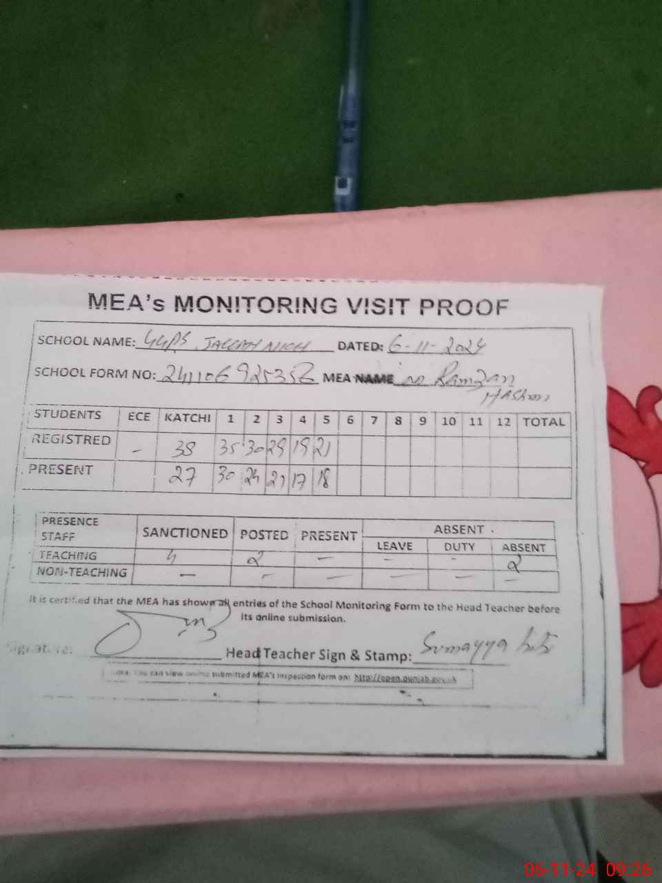 | EMIS Code: 36410366 | Name of School: GGPS JALLAH NAICH, MOOHI WALA KABIRWALA | |||