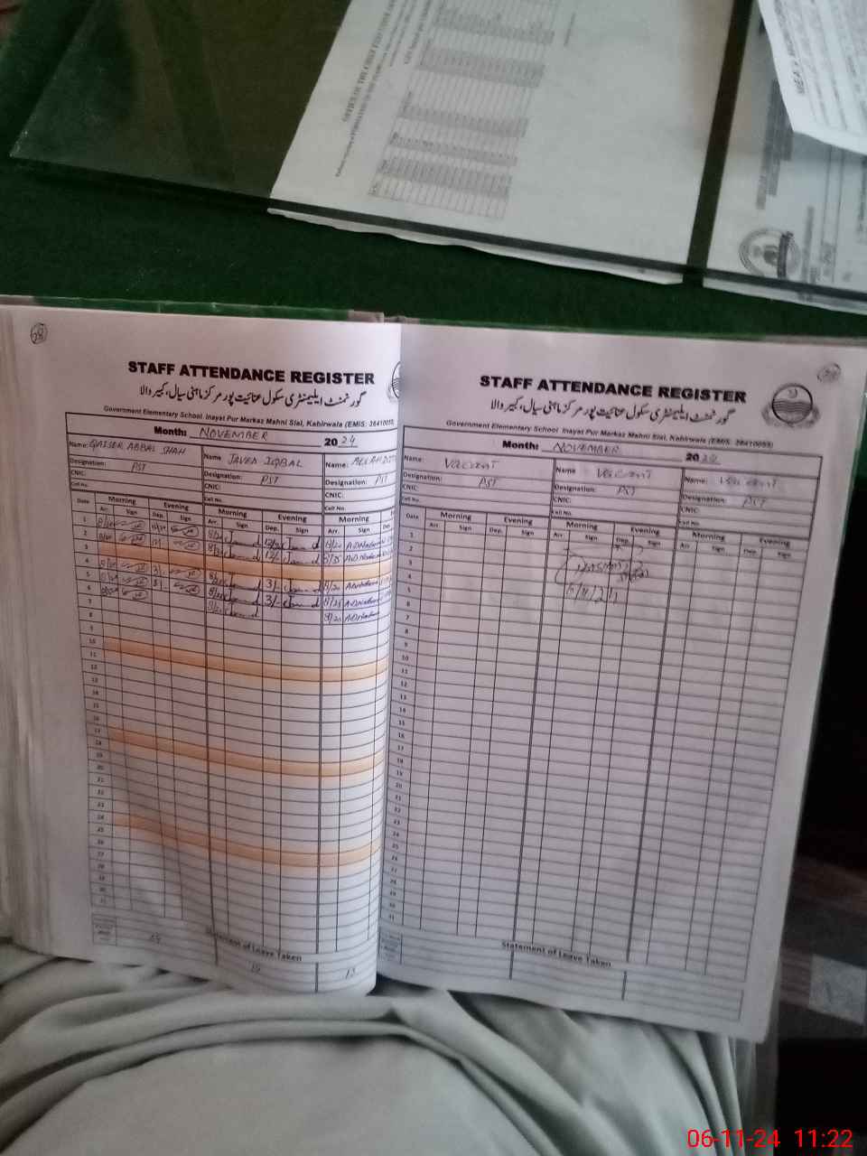 | CNIC | Full Name | Designation | R/C | Absence During Last Calender Month |