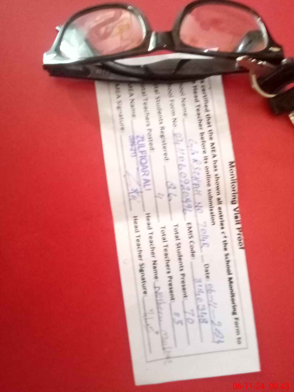 | Attendance Register | Head Teacher | MEA with School | Visit Proof |