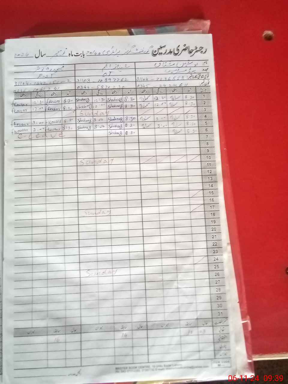 | Name: No**** Mu**** Designation: (School Headmaster's/Headmistress's) PST Phone/Cell Number: 03**** |