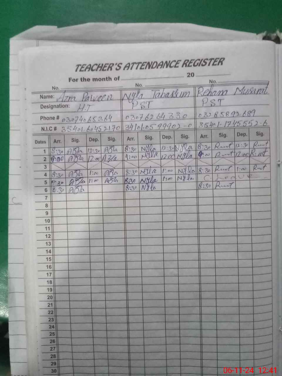 | Name: Az**** Pe**** Designation: (School Headmaster's/Headmistress's) PST/PTC/JV Phone/Cell Number: 03**** |