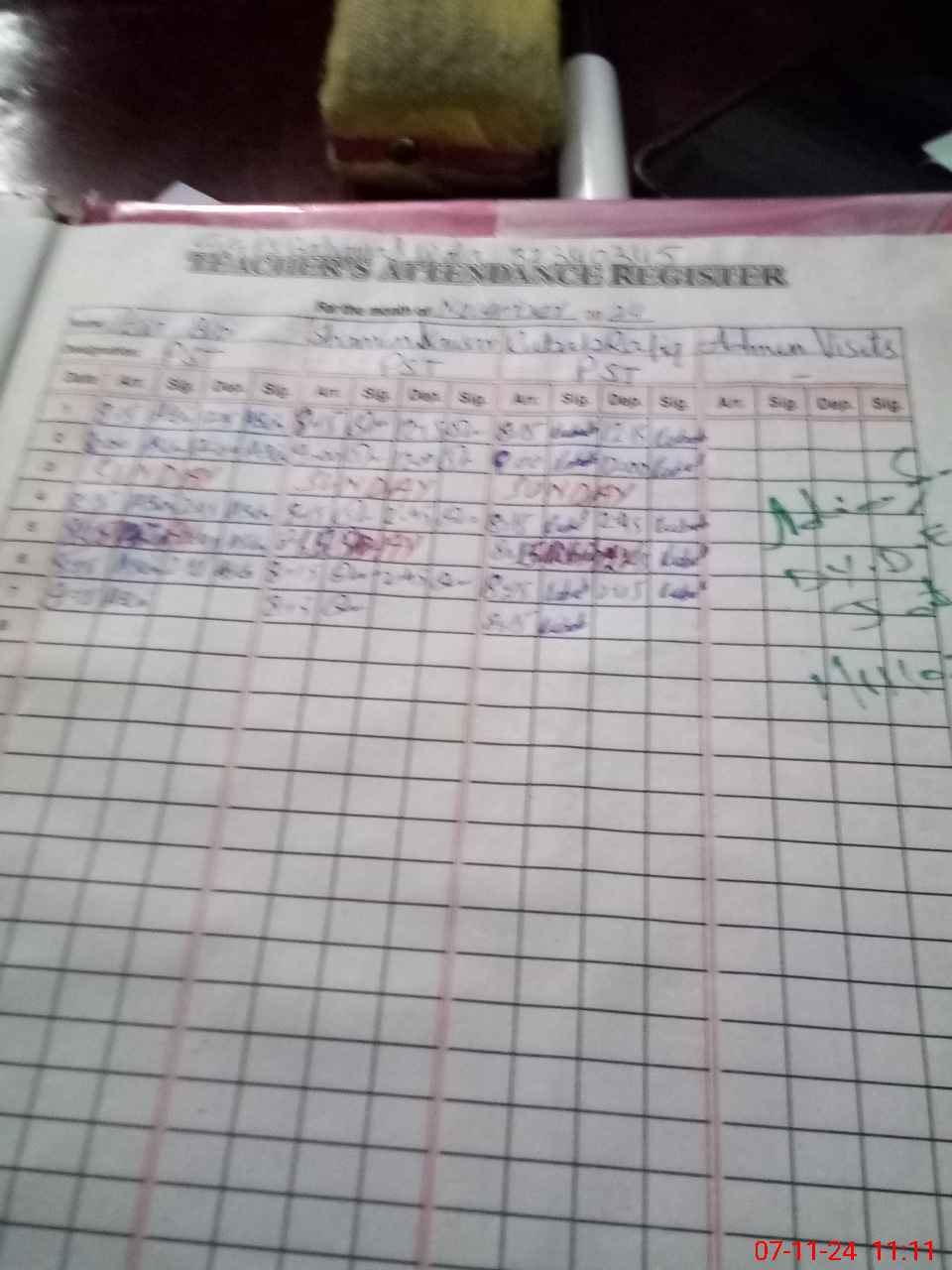 | Attendance Register | Head Teacher | MEA with School | Visit Proof |