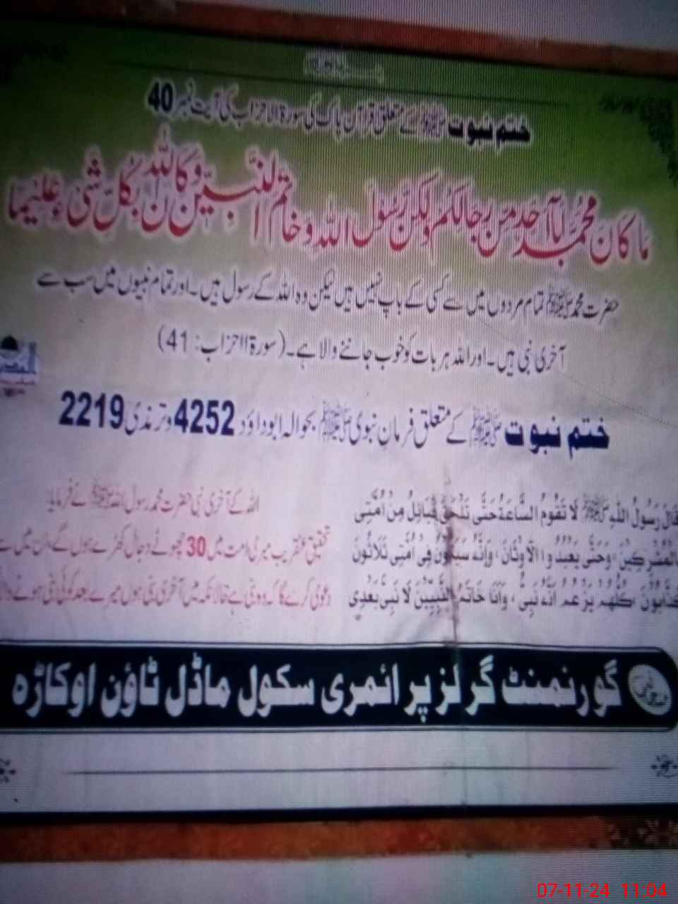 | District: OKARA | Tehsil: OKARA | Markaz: OKARA SADAR - FEMALE | Level: Primary | |