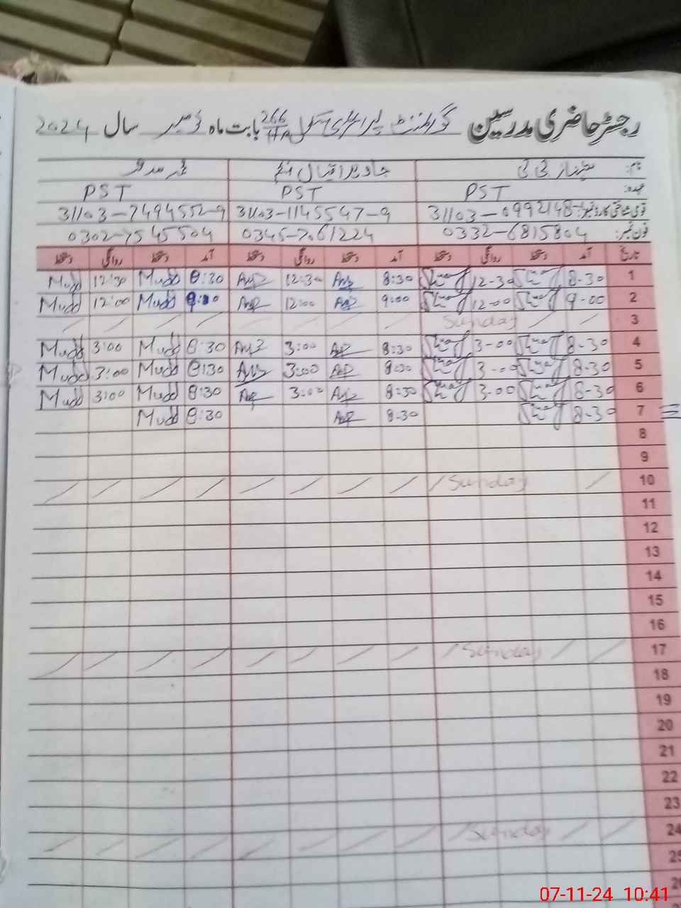 | Name: Sh**** Bi**** Designation: (School Headmaster's/Headmistress's) PST Phone/Cell Number: 03**** |